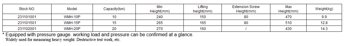 WMH-P Jack with Pressure Gauge