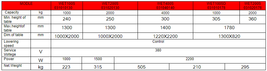 WET Electrical Hydraulic Lift Table